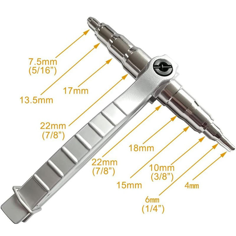 Alicate expansor profesional diseñado para trabajar con tubos de cobre de 1/4" a 7/8" (6-22mm). Expande los extremos de los tubos de forma rápida y precisa, sin necesidad de herramientas adicionales. Ideal para instalaciones de aire acondicionado, refrigeración y sistemas hidráulicos. Construcción robusta que garantiza expansiones uniformes y seguras. Perfecto para técnicos y aficionados al bricolaje que buscan resultados profesionales en cada trabajo.