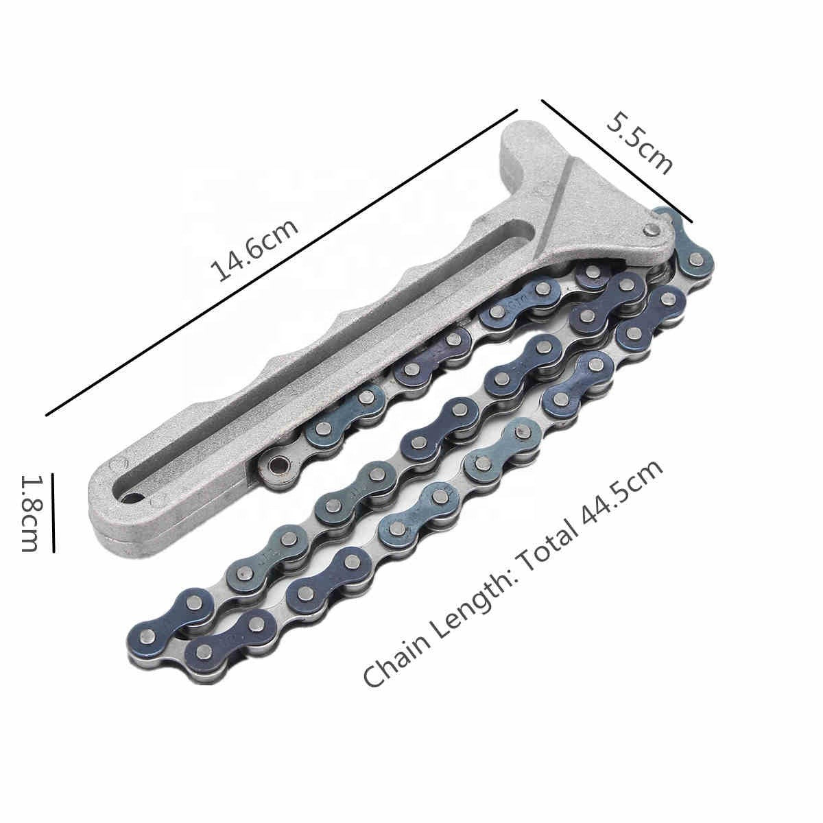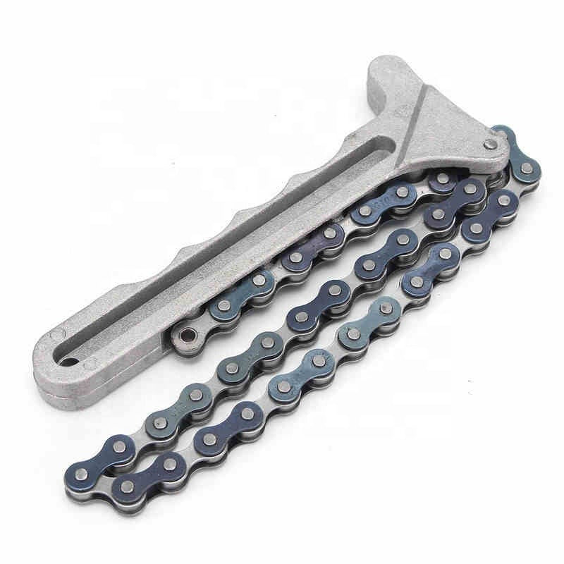 Cadena de sujeción universal para filtro de aceite, diseñada para adaptarse a la mayoría de vehículos y camiones. Este zuncho metálico facilita la instalación y extracción del filtro sin necesidad de herramientas especiales, ahorrándote tiempo en cada cambio de aceite. Resistente y duradero, es un accesorio imprescindible en tu kit de mantenimiento vehicular. Compatible con diferentes tamaños de filtro, garantiza un agarre seguro y confiable.