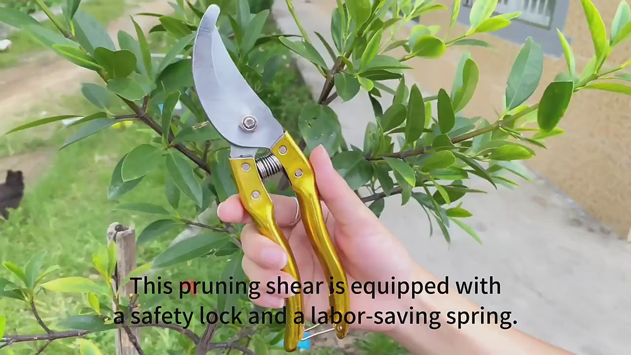 Tijera de podar de 8 pulgadas con cuchillas de acero templado que garantizan cortes limpios y precisos en ramas y tallos. Diseñada con mangos ergonómicos antideslizantes para mayor comodidad durante el trabajo prolongado. Mecanismo de palanca reforzado que reduce el esfuerzo físico y aumenta la potencia de corte. Ideal para jardinería doméstica, mantenimiento de plantas y trabajos de poda general. Duradera y fácil de limpiar, perfecta para cualquier aficionado al cuidado de plantas.